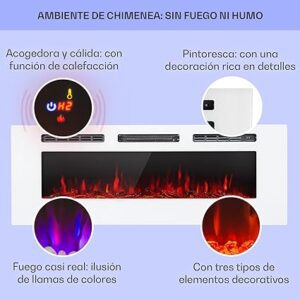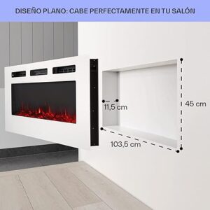 Seguridad y Conveniencia: Esta chimenea eléctrica ofrece una experiencia segura y libre de preocupaciones. Fácil de encender y apagar, no necesitas preocuparte por la suciedad o los humos, ya que funciona sin necesidad de leña y no emite ningún tipo de emisiones. Disfruta de un invierno cálido y acogedor sin complicaciones.
