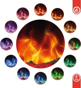 - Efecto de llama 3D realista: 12 colores y 5 niveles de brillo ajustables mediante mando a distancia.